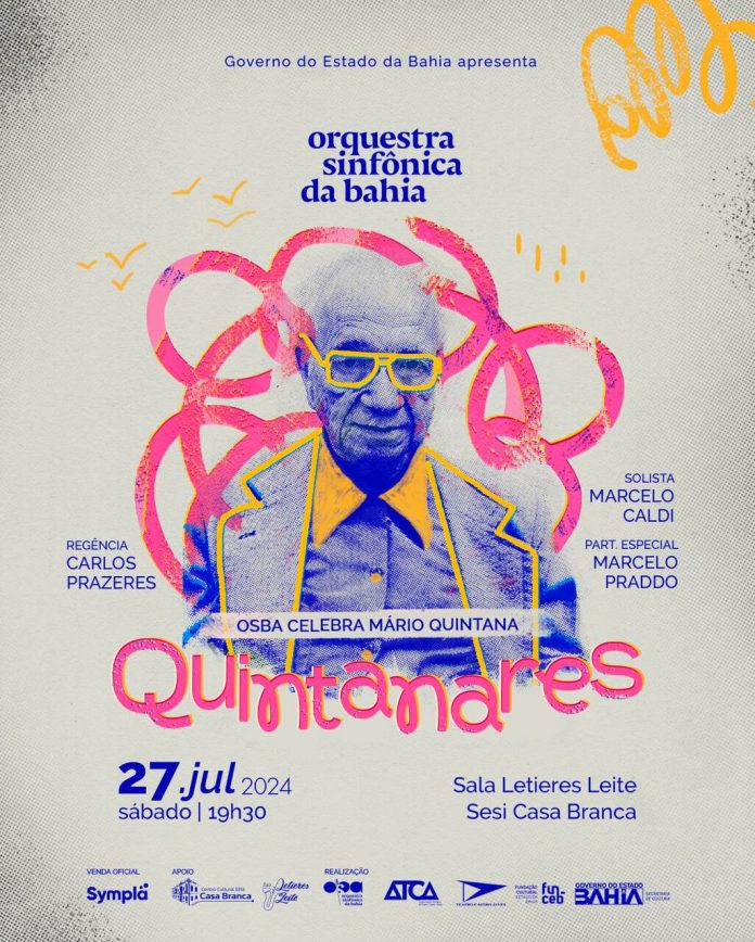 No dia 27 de julho, um sábado, a Orquestra Sinfônica da Bahia realiza o concerto Quintanares – Osba celebra Mário Quintana, às 19h30, na Sala Letieres Leite, localizada no Sesi Casa Branca (bairro Caminho de Areia, na Cidade Baixa).
