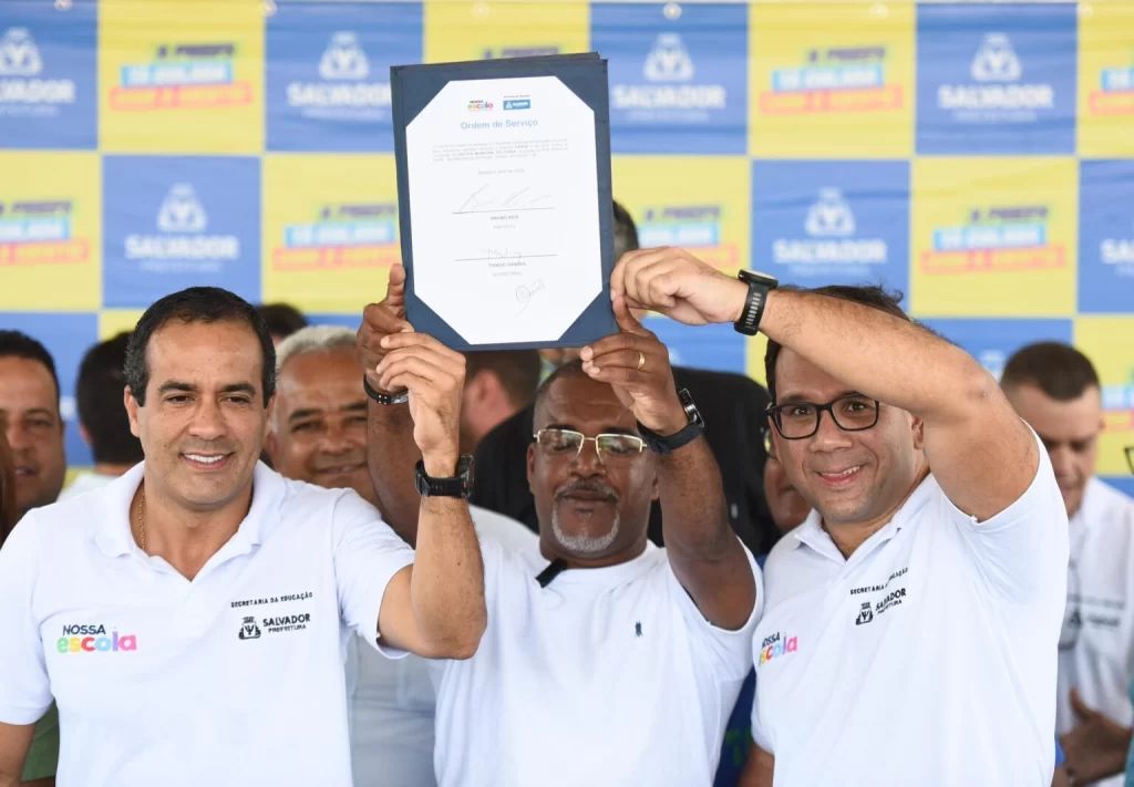 Salvador vai ganhar mais uma nova escola de grande porte, com capacidade para atender 1,7 mil crianças na região do Residencial Ceasa, uma das localidades mais afastadas do Centro da cidade. O prefeito Bruno Reis esteve no local nesta sexta-feira (19), ao lado do secretário municipal de Educação (Smed), Thiago Dantas, para assinar a ordem de serviço para a construção da Escola Municipal do Ceasa, que terá um investimento de quase R$ 25 milhões.