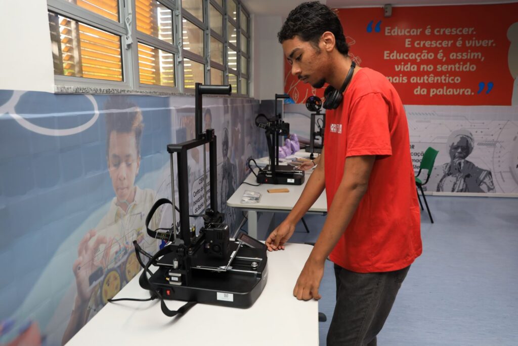 O Governo do Estado deu início, nesta terça-feira (20), à implantação de 180 laboratórios maker em escolas da rede estadual de ensino. A primeira unidade foi inaugurada no Centro Estadual de Educação, Inovação e Formação (CEEINFOR) Mãe Stella, no bairro do Cabula, em Salvador. A cerimônia contou com a presença do governador Jerônimo Rodrigues, da ministra da Ciência, Tecnologia e Inovação, Luciana Santos, e de secretários estaduais.