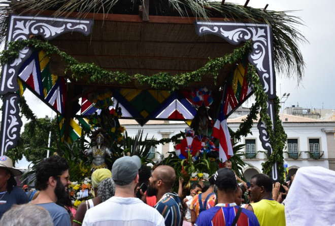 A primeira etapa do desfile termina em frente à Câmara Municipal de Salvador, onde os carros do caboclo e da cabocla são recolhidos ao caramanchão da Praça Thomé de Souza.
