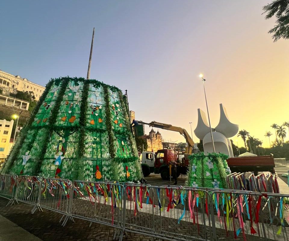 Devido a questões operacionais, a tradicional entrega da premiada mega árvore de Natal, promovida pela Empresa de Limpeza Urbana de Salvador (Limpurb), terá uma nova data: o evento ocorrerá na segunda-feira (16), às 18h, na Praça Maria Felipa, no Comércio. Mais de 27 mil garrafas pet preenchem harmoniosamente os 23 metros de estrutura do monumento, que recebe a assinatura do artista plástico Gilson Cardoso. A mega árvore de natal ficará disponível para visitação até 6 de janeiro de 2025.