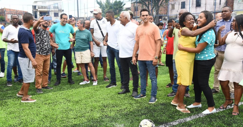 Dando continuidade às ações de fortalecimento do esporte na capital baiana, a Prefeitura de Salvador entregou neste domingo (3) mais um campo com grama sintética na região do Subúrbio Ferroviário. O Campo do Carlitão, localizado na Rua Pedro Ortiga, no Rio Sena, foi inaugurado com a presença do prefeito Bruno Reis. Este foi o 36º equipamento do tipo entregue desde 2021 pela atual gestão.
