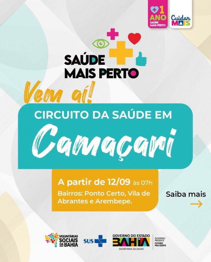 A partir de 12 de setembro, Camaçari será palco do Circuito “Saúde Mais Perto”, que levará serviços de saúde para os bairros de Ponto Certo, Vila de Abrantes e Arembepe. A iniciativa, promovida pela Secretaria da Saúde do Estado da Bahia (Sesab) em parceria com as Voluntárias Sociais da Bahia (VSBA), tem como objetivo ampliar o acesso gratuito a cuidados médicos essenciais. Cada etapa do Circuito deverá atender cerca de 3.500 pessoas, totalizando mais de 10 mil atendimentos ao final.